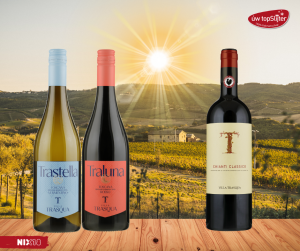 De “Traluna”, gemaakt van 100% sangiovese, is fruitig en vriendelijk van karakter, met verfijnde aroma’s van rood fruit, kersen en viooltjes.
